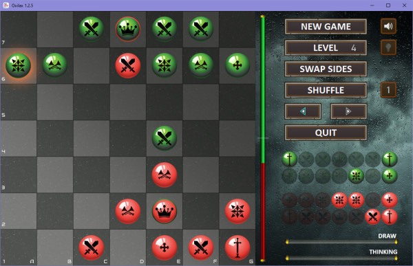 Další hra, kterou bych vám rád představil, je Oxilax z roku 2021. Nemůžete si nevšimnout, že se nápadně podobá Baxalixo. Není to náhoda, Oxilax byl vyladěn rovněž genetickými algoritmy stejně jako Baxalixo a má ještě více strategických a kombinačních možností.