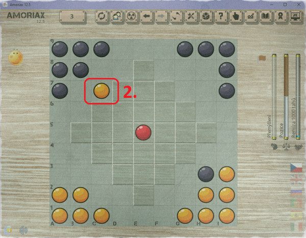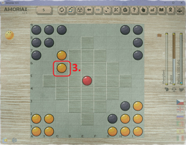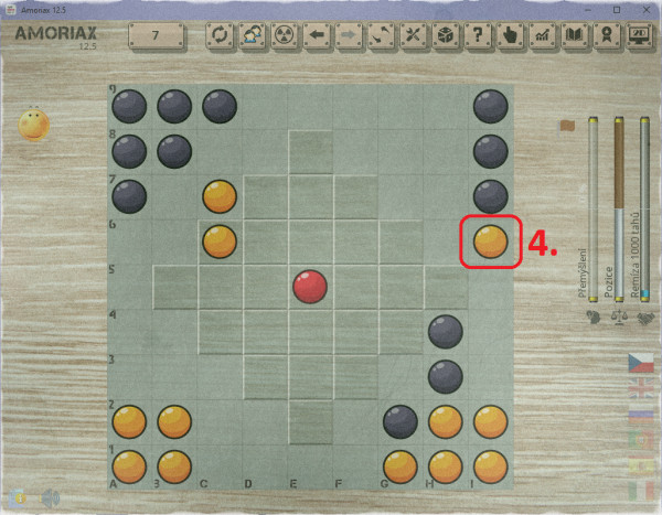 3. tah dostane kámen díky zarážce blíže ke středu z druhé strany: