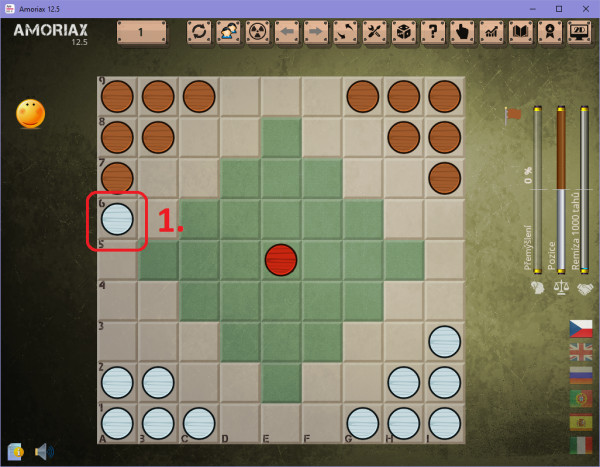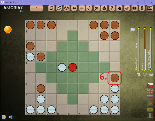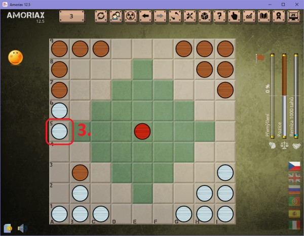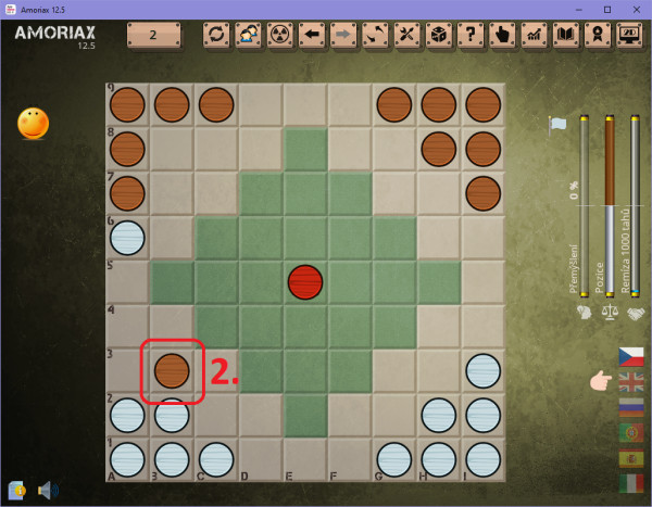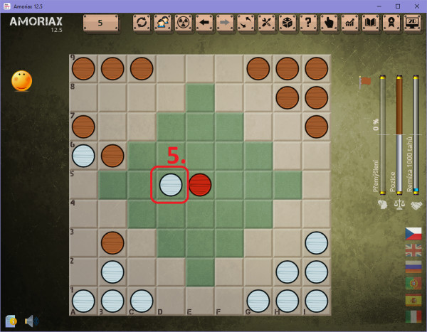 Ostrá varianta Caesarova zahájení je přiblížení se bílého k červenému kameni, který zůstal na korunce: